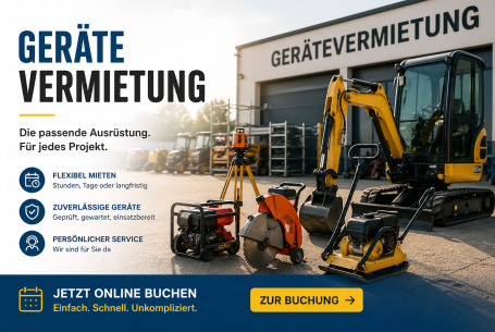Ob für Bauprojekte, Veranstaltungen, Gartenarbeiten oder kurzfristige Einsätze – bei uns finden Sie die passende Ausstattung zu fairen Konditionen. Qualität, Sicherheit und ein reibungsloser Ablauf stehen dabei für uns an erster Stelle.